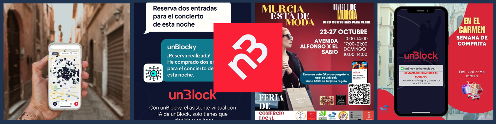 unBlock es La SúperApp que pone la ciudad en tus manos. Toda la información, servicios y promos exclusivas de la ciudad de Murcia para ti. Podrás comprar, reservar y acceder a cualquier producto, evento y experiencia de la ciudad.